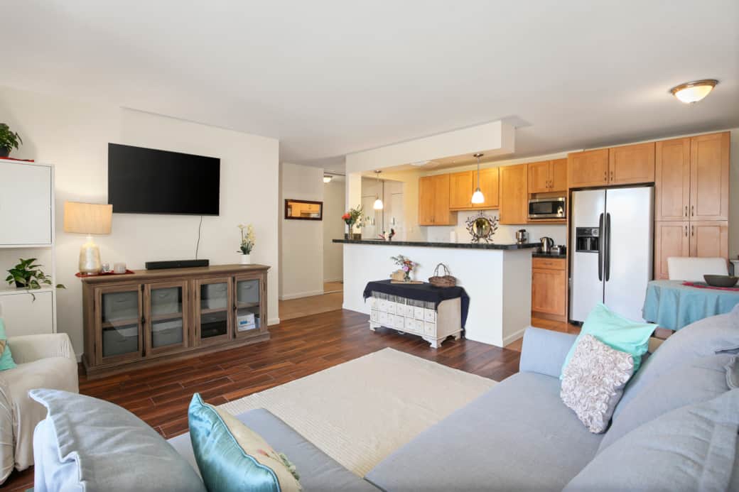 ENJOY thisspacious and light-filled 1 Bedroomunit with all you need. Everything you desire is only moments from the front door, including: shopping, dining, parks and entertainment. Lovely open-floor living with HUGE glass sliders to thecovered balcony that invites the sun in every afternoon. Relax with your morning coffee while relishing theviews over Mayfair or host friends for sunset cocktails. Relax in thisspacious living room with new sectional that converts to a queen bed, watch your shows on the newSmart TV with all of the apps.An upgraded kitchen awaits with stainless steel appliances, plenty of storage and all you need to have a lovely meal.There is a large bedroom with new Queen bed andaccess to the balcony and full bathroom.Coin Laundry is found on every floor of the building.Theon site amenities include a secure building,an indoor and outdoor pool, a fitness center, a community room, and a sauna. You will love the peacefulness of the community garden's winding paths, seating and water feature, asyou relax and soak up the sun. Locatedmoments from the services and restaurants of 9th and CO Blvd. Trader Joe's, Postino, the AMC Theatre and CVS Pharmacy are just some of the retail options within easy reach. Easyaccess to Cherry Creek and Downtown Denver.